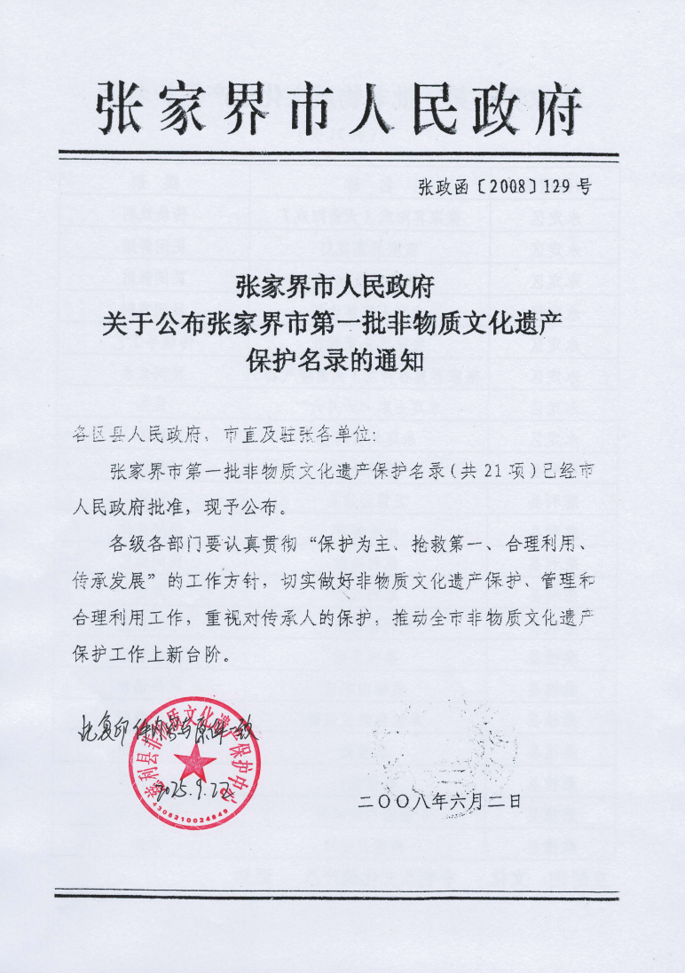 2008年六月,張家界市第一批非物質(zhì)文化遺產(chǎn)保護(hù)名錄公布,張家界“五雷山廟會(huì)”在列
